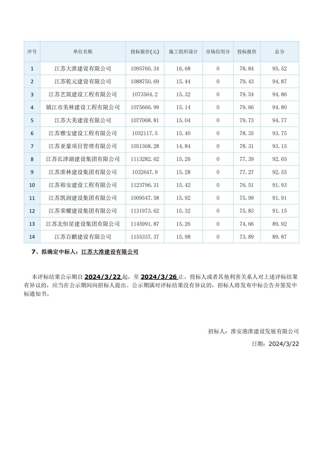 深度除氟項目管理用房及配套工程中標候選人公示